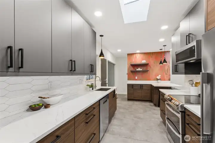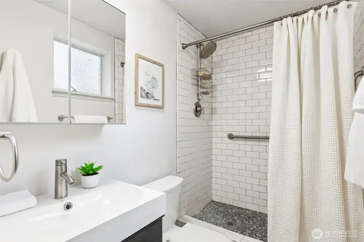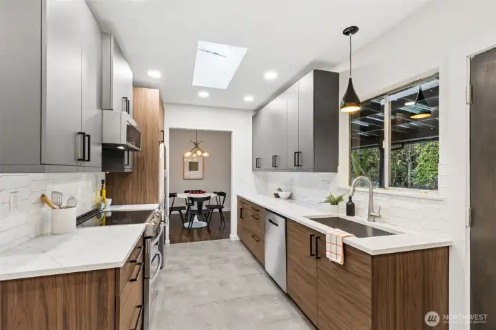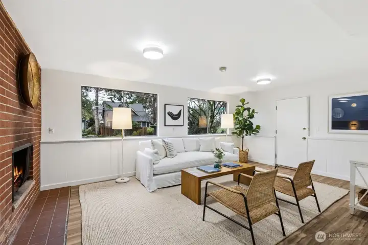 Welcome home to this sophisticated and charming 1961 mid-century modern home in Seattle’s beloved Maple Leaf neighborhood. Thoughtfully updated, it offers a serene primary suite with newer three-quarter bath and walk-in closet, four total bedrooms, and two fireplaces. The remodeled kitchen shines with abundant storage and a cozy eating nook. Downstairs, a generous family room and private fourth bedroom create the perfect guest or office retreat. Outside, the expansive 11,238 sq.ft.lot invites gardening, bocce ball, and unforgettable summer gatherings. Enjoy a 2-car basement garage w/ EV charging station. Efficient electric heat pump provides whole-home heating and cooling. Relish this Maple Leaf community, close to shops and services.
