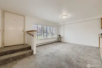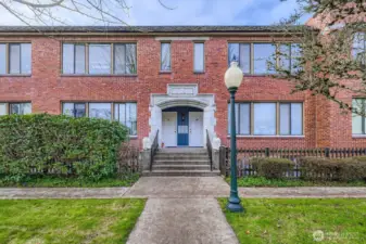 Brownstone-inspired ground floor condo in a historic building set on a quiet tree-lined street! Features include all-new interior paint, carpet, blinds, water heater + updated 6-panel doors. Living Room with wall of windows that flood the space with natural light connects to the dining area with adjacent pantry. Kitchen offers extended counter space & double stainless sink. Full-size washer & dryer in your own private in-unit laundry room. Reserved parking space & additional storage unit. Located just minutes to I-5, Hwy 2, and the revitalized Everett waterfront with restaurants, hotel, and marina. Close to Providence Hospital, Everett Naval Station, EVCC, and Garfield Park - this home offers both charm and convenience. Truly move-in ready!