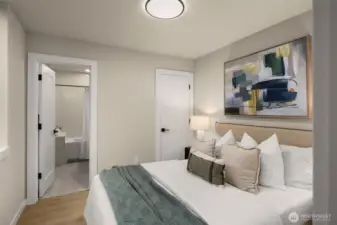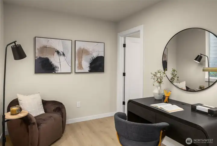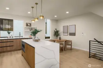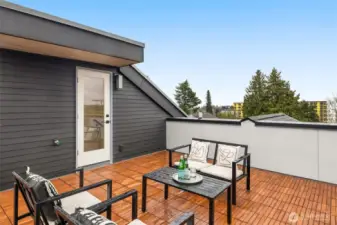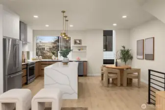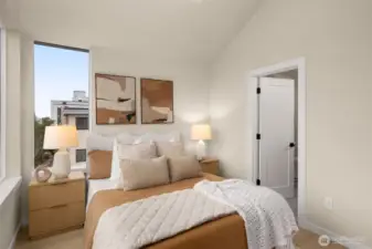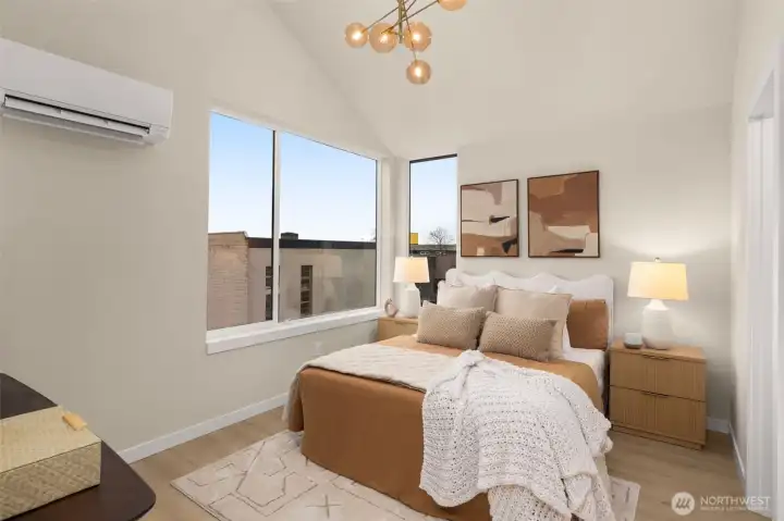 Incredible 4.75% financing for 10 years. Modern living meets thoughtful design in the brand-new Sawyer community by GreenCity, located near Green Lake and in the heart of Roosevelt. The light-filled main level features a gourmet kitchen with waterfall quartz, premium appliances, and seamless flow to the living area. A lower-level bedroom with a stylish bath offers flexible use for guests, work, or a roommate. The upper-level primary suite includes vaulted ceilings and a spa-inspired bath. Additional bedroom can be used as an office or bedroom. Enjoy territorial views from your private rooftop deck. EV-ready parking, energy-efficient systems, and close access to cafés, restaurants, transit, and shopping.