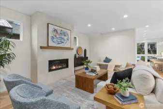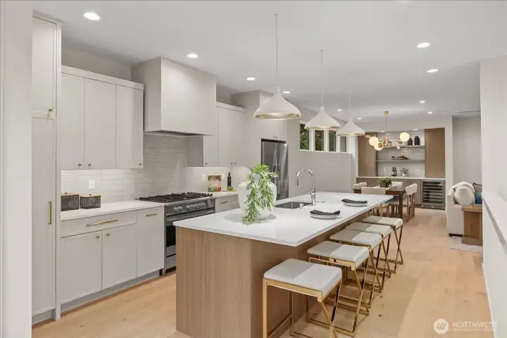 Welcome to a thoughtfully crafted new construction residence tucked into the heart of Wallingford, where striking modern design meets warm, functional living spaces. Oversized windows flood the home with natural light, creating an inviting atmosphere throughout the open main floor anchored by a stylish tile wrapped fireplace and a chef inspired kitchen. A dedicated entertaining bar with wine fridge makes gathering with friends a breeze. Upstairs, the vaulted primary suite offers a peaceful retreat with a spa like bath. Enjoy sweeping rooftop views, a rare two-car garage, full laundry room, and private yard. All just minutes from dining, parks, and shops - an exceptional home in one of Seattleās most coveted neighborhoods.