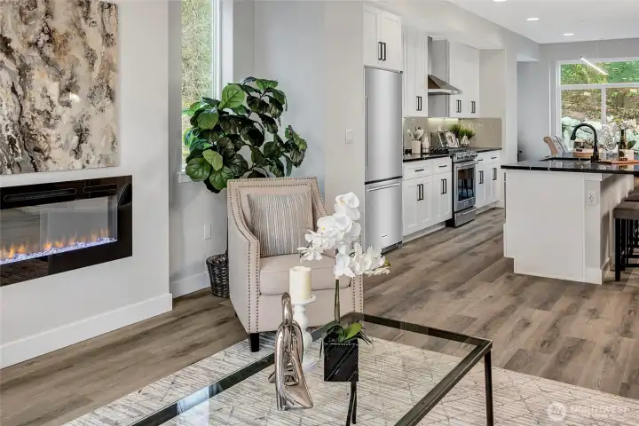 Lot C102 at the Shore16 by MSR Communities offers an active lifestyle just blocks to DT Kenmore & close to the Burke-Gilman Trail, UW Bothell, & central location between Seattle & Bellevue. Bed & 3/4 bath on ground floor is perfect guest rm or office. LUXURY FINISHES 3cm quartz counters, soft-close under-lit cabinetry, KitchenAid gas range w/SS hood, full height tile backsplash, durable LVP on main floor, sleek 48" electric fireplace, forced air w/cooling, wrought iron railings, over-sized windows, stylish primary bath with dual sinks, vaulted ceilings in primary, covered deck. Cat-6 wiring, 2-car garage w/opener+keypad, EV charging, TV wire tube, ring doorbell. Northshore SD! Buyer Reg Policy. Model home located at C104. Home is complete!