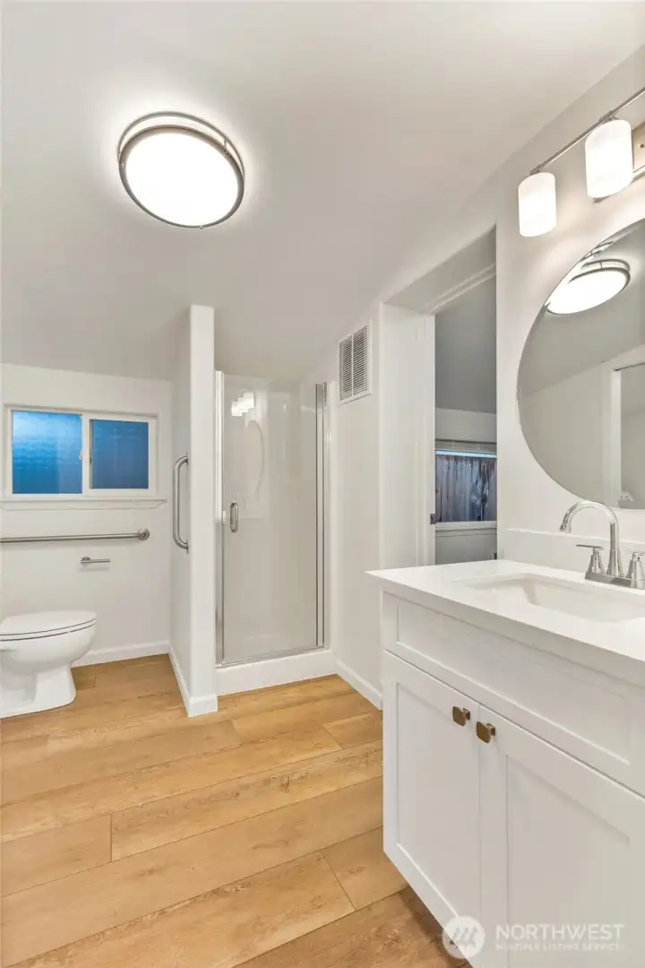 Beautifully remodeled rambler in a prime location! Enjoy new LVP flooring, tile, countertops, cabinets, carpet, updated plumbing and lighting fixtures. Skylights brighten the kitchen and great room. Home features 3 bedrooms, 2.75 baths, a flex room, and a large utility room. Primary suite with private bath and slider access to entertainment sized rear deck. Low-maintenance yard and large storage shed. Property backs to a protected native growth area. In the desirable Mukilteo School District and close to shopping, professional services, Boeing, and Puget Sound. Ramblers are becoming rare. Don’t miss this one!