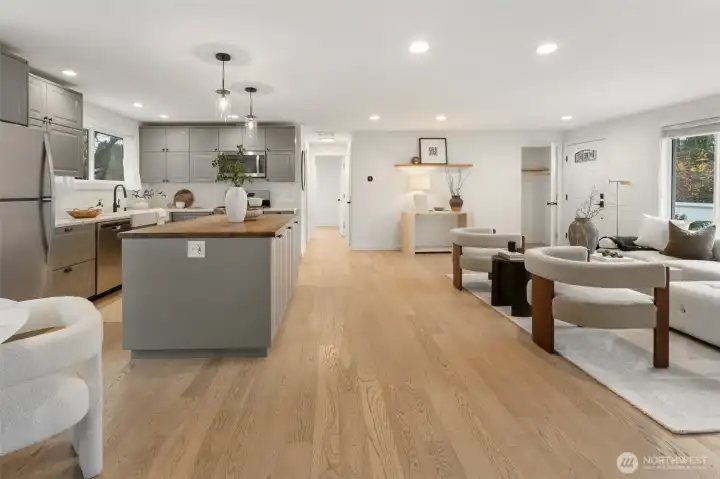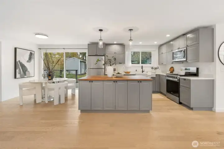 Exceptional ALL-NEW Move-In Ready Rambler on an expansive, fully fenced lot with a detached heated office/flex space! Fully gutted to the studs in ’22 with new subflooring, insulation, drywall, roof, updated electrical panel/service,plus new crawlspace insulation & vapor barrier (’25) and more. Enjoy a beautiful new kitchen with stainless appliances, gas cooking, and a large center island. Home lives large with an open floor plan, abundant natural light, Luxury Vinyl Plank flooring, and potential to add a powder bath.Outside features a garden shed and a large deck for year-round entertaining. Gated RV/boat parking,ample side/street parking, and NO HOA. Minutes to parks, shopping, schools, beaches & light rail.Don't miss this one—A must-see!