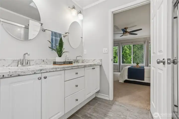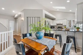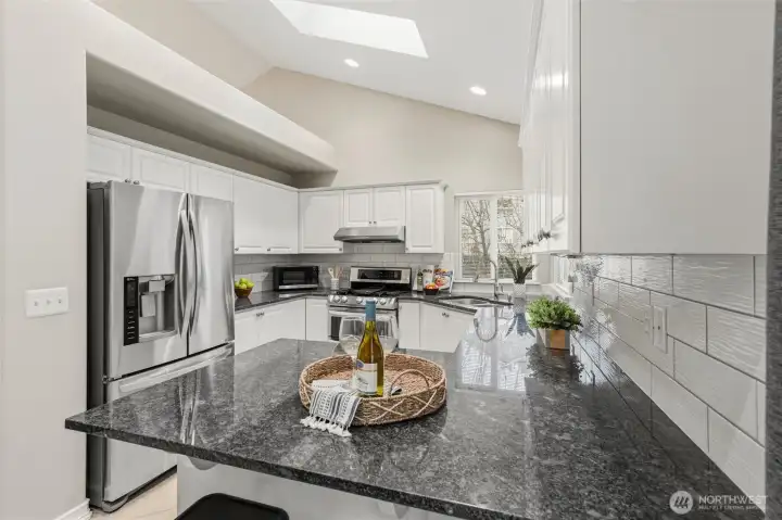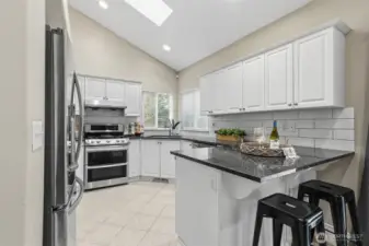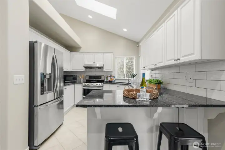 Located in the desirable Staffordshire neighborhood, this home checks all of the boxes! Great location convenient to PSNS, Bangor and all Poulsbo amenities. Large lot w/private fenced back yard, great street appeal, wonderful floorplan, amazing natural light and impeccable condition! Main floor has a great circular floorplan. Stepping inside, the living room is to your left with kitchen and dining adjacent. Vaulted ceilings and skylights make this floor filled with natural light. The kitchen is a delight, open and spacious with white cabinetry, subway tile and black granite countertops. Adjacent dining area opens to spacious deck. Steps down from the dining is a cozy family room with fireplace. Ensuite primary w/wall of windows. See today!