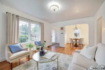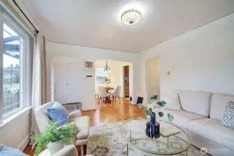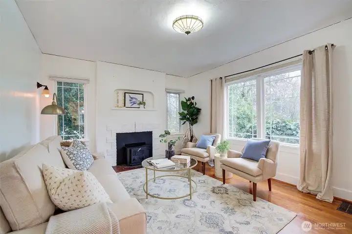 Absolutely darling 1927 Craftsman in a great location. 4BR, 1.75 Bths, wood burning fireplace, Hardwood floors and a full unfinished basement with great ceiling height. Upgrades include thermopane windows, updated electrical panel, Water main, newer roof & exterior paint. This home also has peek views of the Olympics from the 2nd level, a lovely fenced yard and is ready for the next phase of life. Come see this one today! No HOA dues, but a small charge for yearly insurance.