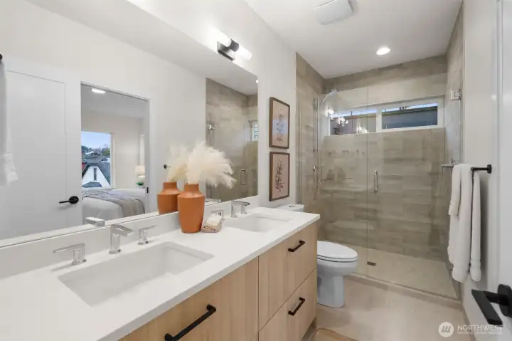 Stunning. Urban. Ballard. Nestled on a tree-lined street, these amazing new Olsen Anderson townhomes offer rare quality + exceptional design. TH4 features a PRIVATE GARAGE and 1,656 sf of luxurious living: open floor-plan, generous rooms, wide plank floors, designer finishes, and spa-like baths. Prepare meals in a dreamy island kitchen. Host epic dinner parties. Retreat to top floor primary suite w/ walk-in closet + spa bath. Entertain friends outdoors on the huge roof deck. Targeting Built Green 4 Star. You'll love the AC, state-of-the-art systems, attached garage, private guest suite, amazing quality throughout. Stroll to great local dining, shops, cafes, night life, parks. Welcome home. BUILDER-PAID 3.99% AVAILABLE FOR QUALIFIED BUYERS!