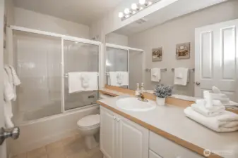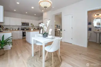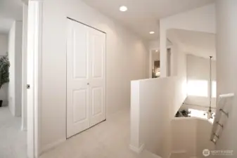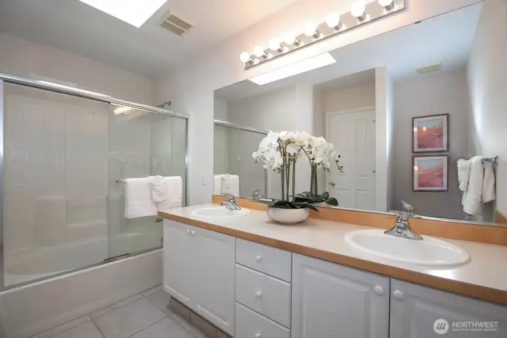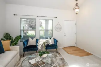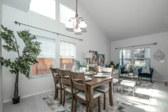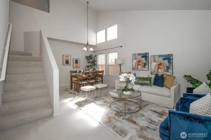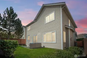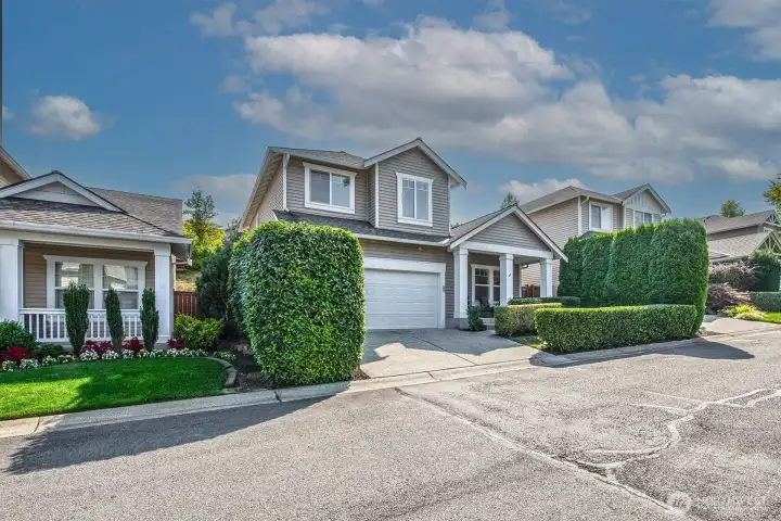 First time on the market since it was built, this home in The Cottages at Highlands East has been beautifully cared for. Backing to open space, it features a covered front porch with access to nearby trails, parks, and top-rated schools. Formal living and dining rooms with vaulted ceilings flow into an open kitchen with refinished hardwoods, center island, and new stainless steel appliances. A casual dining area connects to the family room with a gas fireplace. Upstairs offers 4 bedrooms and 2 full baths, including a spacious primary with walk-in closet and skylit en-suite, plus laundry. Outside enjoy a fully fenced, landscaped yard with patio. Updates include new carpet, paint, 30-year roof, garage door, A/C, and more.