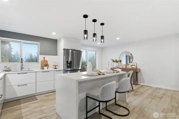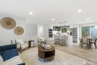 Gorgeous! move-in ready split-level home featuring 3 bedrooms, 3 bathrooms, and a versatile bonus room perfect for an office or additional living space. This property offers quality finishes, modern touches, and abundant natural light that enhances its warm and inviting feel. Enjoy an oversized patio ideal for outdoor entertaining, along with a low-maintenance yard and ample parking space for vehicles, RVs, boats, and more. The lower level includes an additional living area with a second kitchen perfect for multi-use needs or investment opportunities. All appliances stay with the home including smart steam closet. Located in a quiet neighborhood with convenient access to shopping and major freeways. Begin the new year in your dream home!