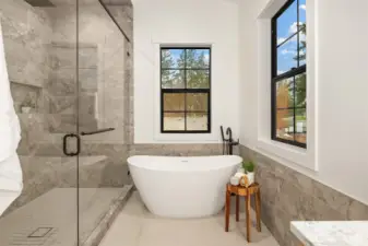 Welcome to this spacious new construction home in East Bellevue. Main level features inviting entryway and powder room - perfect for guests. Open concept, well-appointed kitchen, offers abundant storage, large island and flexible dining space. Gas fireplace with custom surround creates an inviting living area opening to great backyard. Separate office is perfect for WFH. Upstairs, find your primary suite with high ceilings & luxe en suite, complete with soaking tub. Laundry room includes w/d & built-ins. Three additional bedrooms, one with a private bath, plus another full bath complete this home. Two-car garage for easy parking & storage. Enjoy close proximity to shopping and dining plus ample parks and the west shore of Lake Sammamish.