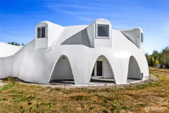 One-of-a-Kind Geodesic Dome Home on 19 Acres. This unique home offers unmatched strength, and architectural beauty. This home will be featured in HGTV Zillow Gone Wild coming soon April 2026! Features include dual-opening 4 car garage, brand-new Fisher & Paykel appliances, R-100 insulation, and a polyurethane on exterior ensuring the dome naturally regulates indoor temperatures, staying 60°–75° year-round without heat or AC. Interior boasts 3 beds + loft with 3 baths., plus expansive dome space for a recreation room, or office. Primary suite upstairs includes full bath, walk-in closet, and hidden bonus room. Additional highlights: advanced water filtration, digital well monitoring, abundant natural light, and resilient construction. A rare must-see combining privacy, & innovation and unmatched structural integrity. (Some photos are virtually staged.)