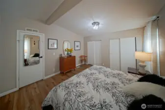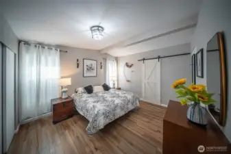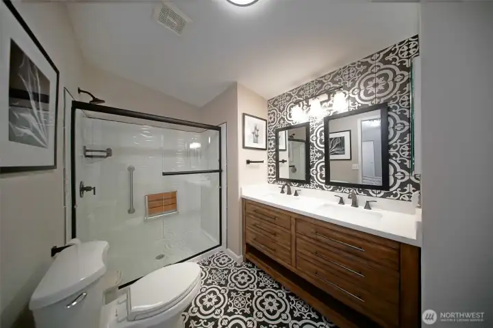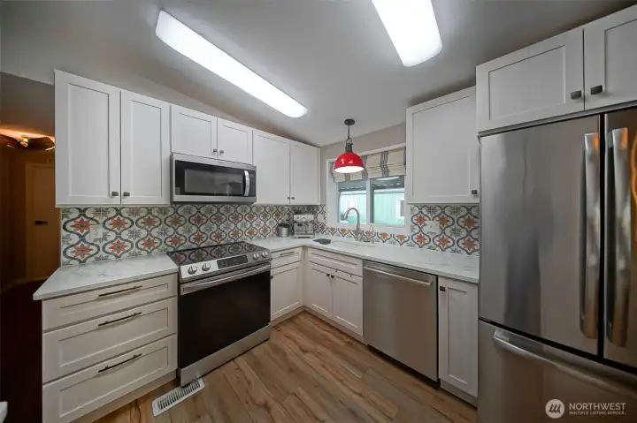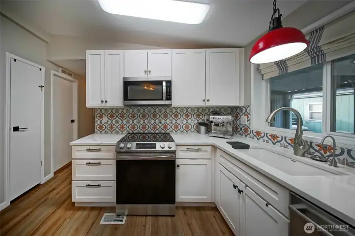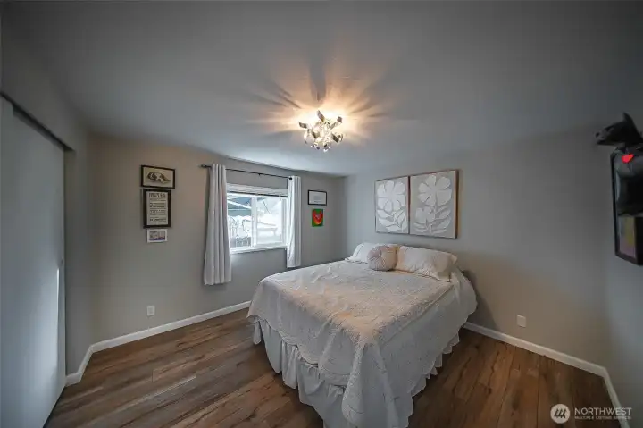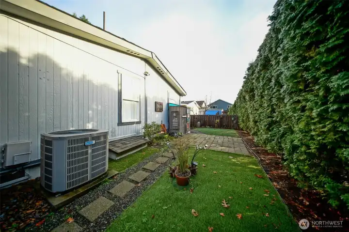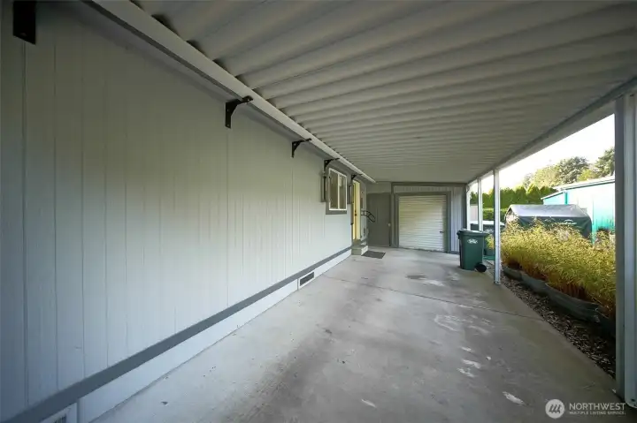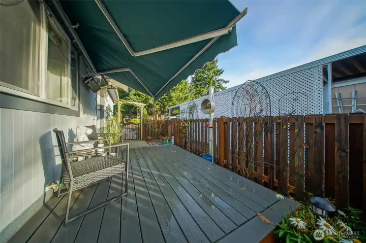 Emerald Park 55+ comm. Peaceful cul-de-sac w/landscaped roundabout & xtra parking. Curb appeal w/rockery accents & low-maint landscaping. Composite deck to patio/private backyard w/2nd patio for BBQs/dining/sun. Secluded yard w/artificial turf lawns. Carport w/ tandem parking + storage shed. Entry via carport to laundry rm - into gourmet kitchen: slab granite counters, modern cabinets, SS appliances, eating bar. Bright open living/dining w/light from 2 bay windows. Newer floors thru-out, designer lights in all rms/halls. Guest BR w/custom California Closets. Barn door to bath w/granite vanity & tiled tub/shower. Primary suite w/dual California closets. Bath w/ detailed tile & walk-in shower. All furniture conveys! Nice!!! Fully updated.
