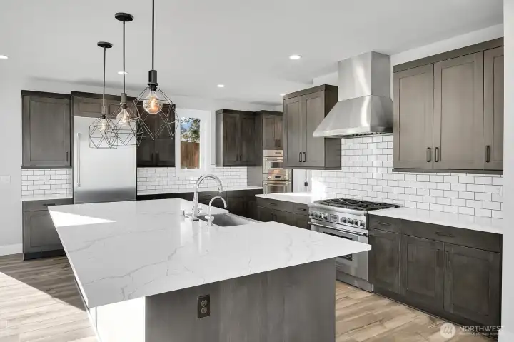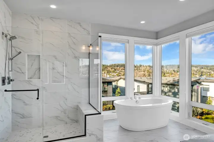 Urban, sleek, modern home, with 4BR/3.25BA + Office + Loft + Bonus/Media room with beautiful lake & mtn views on a quiet street within walking distance to the Seahawks Training Center. Spectacular gourmet Kitchen w/quartz surfaces, 5'x11' center island, commercial grade 6 burner stove & double oven. Light filled LR/DR w/fireplace, 9' ceilings, hrdwds & covered balcony for entertaining. Lavish Primary Suite w/spa-like bath w/relaxing soaking tub & custom CA closet. Lower level w/huge Bonus room w/wet bar & separate BR/BA - perfect for nanny quarters! Enjoy A/C, Ecobe smart thermostat, EV outlet, solar panels, fenced yard & much more. Great schools! Minutes to retail, Microsoft, Amazon, Boeing, fwys & DT Bellevue/Seattle. The PERFECT retreat!