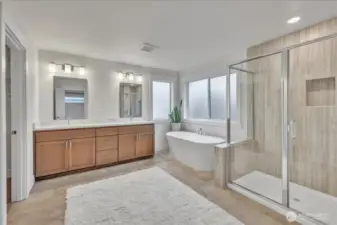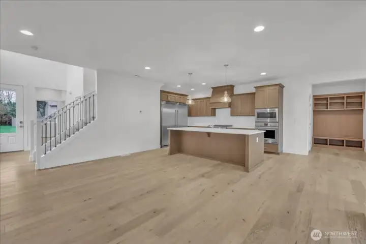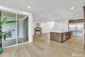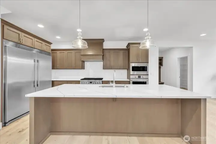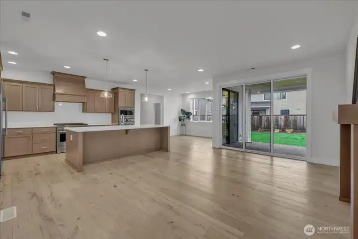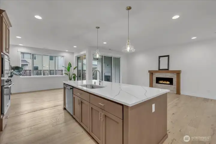 Welcome Home! This 2,848 sq ft Oakbrook home by Northridge Homes features an open main floor w/ engineered hardwoods through the entry, kitchen, and dining. A true main-floor bedroom w/ closet and adjacent ¾ bath offers flexible living. The kitchen includes custom cabinetry, quartz countertops, large island, SS appliances, 6 burn gas range, under-cabinet lighting, and pantry. The family room features gas fireplace and slider to a covered outdoor living space with an additional gas fireplace. Upstairs offers a spacious primary suite w/ spa inspired 5pc ensuite, spacious bedrooms, bonus loft, & laundry. 3-car tandem garage w/ 220V EV outlet, mudroom, landscaped and fully fenced yard. Walking distance to Oakbrook Golf Club and parks!