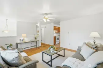 MOTIVATED SELLERS ... Come & see this freshly painted inside & outside 4 bedroom 2 full bath home in quite neighborhood. Entry allows for a private entrance to upstairs or downstairs. New flooring throw out downstairs warms up 2 bedrooms & 1 full bath & laundry area w a huge family room which has a lot of natural outdoor light w all the windows throughout. 2 bedrooms & 1 full bath upstairs w kitchen & living room. Sellers would like to add a Washer/Dryer as a bonus that are in the garage! New pathway to backyard allowing for a private downstairs entrance for renters. Back yard is spacious perfect for entertaining, gardening & has fruit trees. Roof only 11 yrs old includes a 50 yr transferable warrantee. *Not on leased land & NO HOA fees.