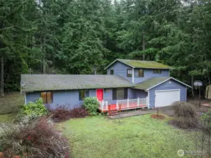 Tucked away on a secluded .44-acre setting just outside of Silverdale, this 3-bedroom home is surrounded by evergreens for exceptional privacy. The main level offers a comfortable living room with a cozy wood stove, a dining area off the kitchen, and both a full and half bath for convenience. Upstairs, you’ll find a spacious great room and family room, providing flexible living and entertaining spaces, along with an additional full bath. Enjoy the outdoors from the front deck or take advantage of the fenced backyard with garden space. A large two-car garage includes an additional workshop area, perfect for hobbies or extra storage. Peaceful, private, and close to town amenities—this property offers the best of both worlds.