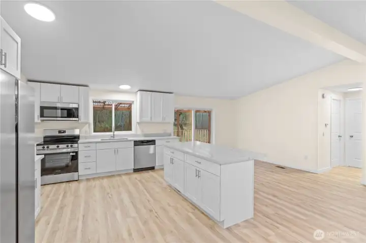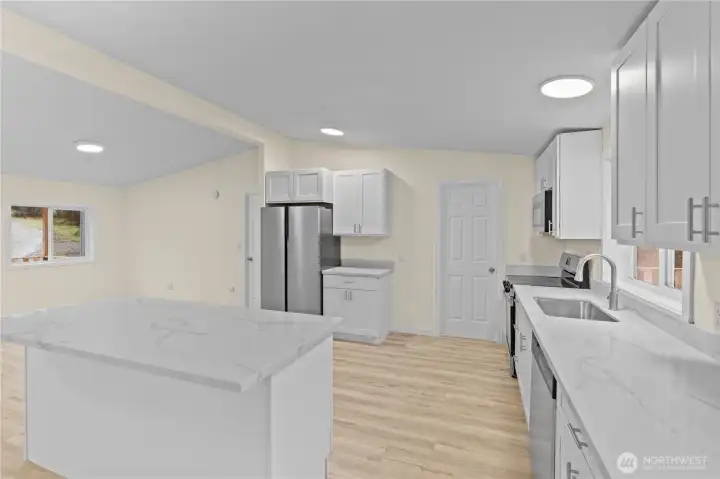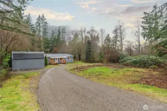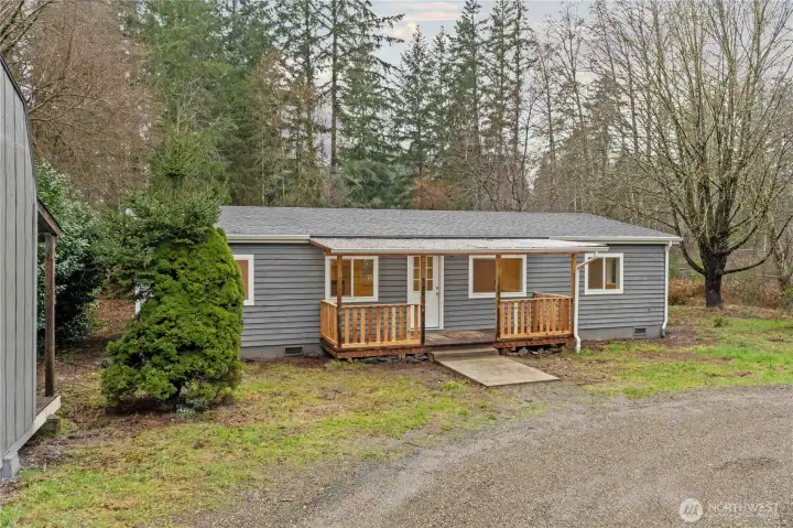 Freshly updated 1,296 sq ft double-wide manufactured home situated on nearly 1.5 acres. This 3-bedroom, 2-bath home features fresh interior and exterior paint, brand-new LVP flooring, and a new roof. The updated kitchen offers white shaker cabinets, quartz countertops, and new appliances. Both bathrooms have been upgraded with matching white shaker vanities and quartz tops for a cohesive, modern look. Additional improvements include new interior doors and trim throughout. A massive detached shed with its own sub-panel provides excellent storage or workshop potential. Plenty of space to spread out, park toys, or enjoy the land.