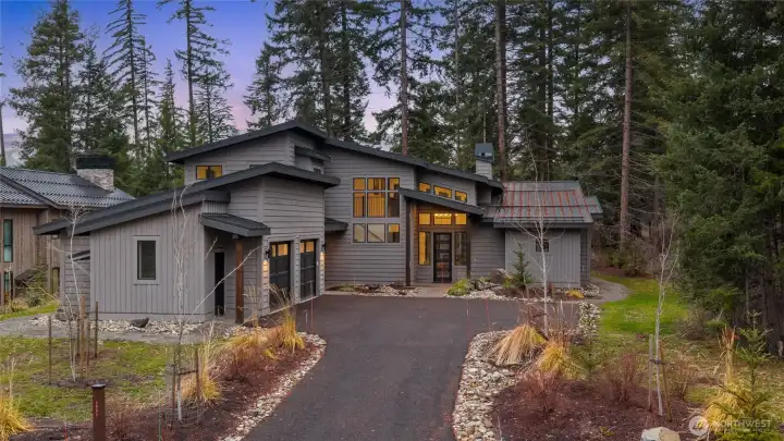 Experience elevated mountain living in this 2023-built modern home in Suncadia’s gated River Ridge community. Spanning 3,064 sq ft, this 4-bed, 4.25-bath retreat features designer finishes, vaulted great room, and a chef’s kitchen with premium appliances. The main-floor primary suite offers spa-like comfort, while multiple guest suites ensure effortless hosting. Enjoy a private, wooded setting with an expansive patio, hot tub, and seamless indoor–outdoor flow. Close to Nelson Farm, trails, and resort amenities—an exceptional turnkey opportunity. Home being sold fully furnished!