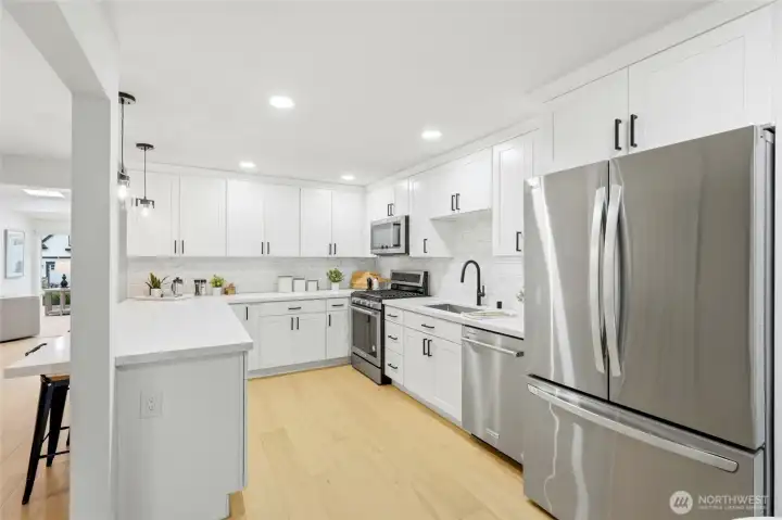 Located in the coveted Enatai neighborhood & served by top-rated West Bellevue schools, this beautifully refreshed home sits on a quiet cul-de-sac in an exceptional location. Beautiful interiors feature all-new flooring throughout, including hardwoods plus a cozy gas fireplace. The spacious kitchen offers ample cabinetry and an inviting eating space for everyday living. The floor plan spans over 2,600 sq ft with 4 bedrooms and 2.25 baths. Set on a generous 9,800 sq ft lot with a private rear yard, plus a 2-car detached garage and outbuilding, this home is a rare opportunity in one of Bellevue’s most desirable communities. Enjoy nearby parks, shopping, dining, and effortless access to downtown Bellevue, Seattle, and major routes. Must See!