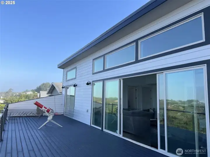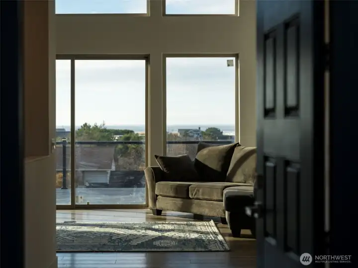 Massive Pacific Ocean views just 3 blks from the beach! Enjoy modern coastal living in this newly built home above the Pacific. Just a short stroll to an exclusive pedestrian beach, you’ll enjoy miles of protected shoreline & a nearby wildlife reserve. A wall of glass & expansive deck frame the ever-changing seascape, while hardwood floors & soaring ceilings elevate the main living area. The great room features a spacious dining area, ample storage, & a well-appointed kitchen with pantry. The main-level suite offers ocean views, dual closets, a generous vanity, and a fully tiled walk-in shower. Downstairs are two large bedrooms, a full bath & a second great room with sliders to a massive patio. A well-managed HOA protects your views.