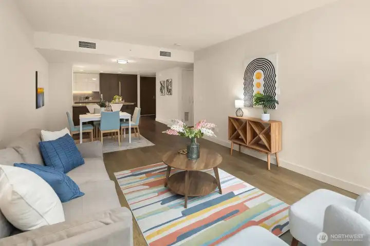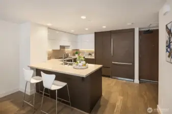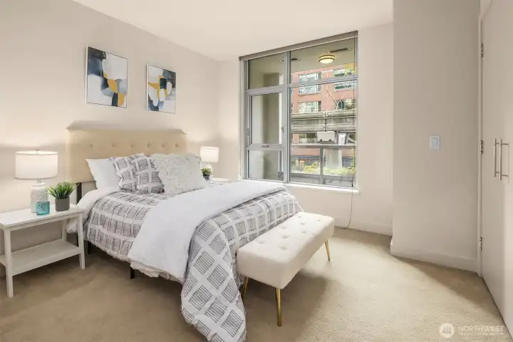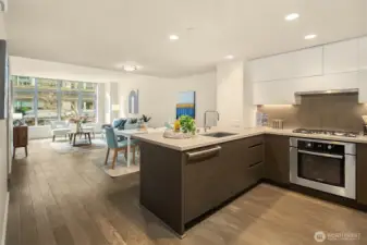 Quiet and private, this west-facing one-bedroom plus flex residence offers refined high-rise living at Insignia. The versatile flex room functions as a guest suite, home office or generous storage—rare for the building. An open-concept layout is anchored by a chef’s kitchen with a built-in Thermador refrigerator, Bosch appliances & sleek finishes ideal for entertaining. Thoughtful separation between kitchen & living areas, along with ample closet storage, sets this home apart. Includes one dedicated parking space & secure storage unit. Investor friendly with no rental cap. Enjoy resort-style amenities including a landscaped 7th-floor park, 41st-floor sky lounges with panoramic city, water, and landmark views, plus 24-hour concierge service.