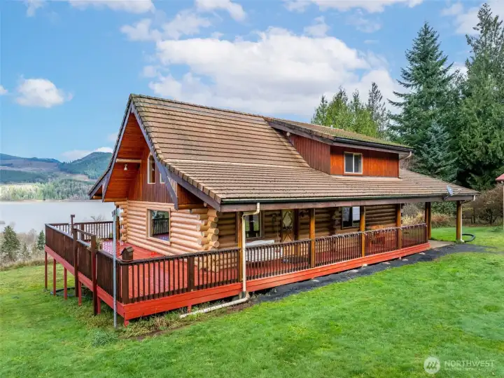 Impressive log home on just over 5 acres. 33x39 3 bay shop with walk in cooler. Attached covered parking as well as detached RV carport and mini barn. Fully fenced pasture with orchard which boasts apple, pear, cherry, and nectarine trees as well as grapevines and a goumi berry bush. Wrap around deck provides unobstructed views of Riffe lake. Inside you'll find an open concept floor plan complete with vaulted ceilings, hardwood floors in living room and stairs as well as central heat and air conditioning to add to your comfort level year round. Please do not enter fenced area with dogs.