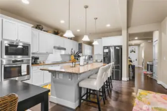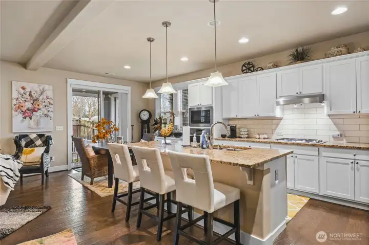 Beautifully maintained 5-bedroom, 2.5-bath home featuring an open kitchen and living room with a cozy gas fireplace. The kitchen offers granite countertops, designer cabinetry and eat-in space, enjoy the butler’s pantry for convenience and a separate dining room. The spacious primary suite includes a large en suite bathroom with walk-in shower and separate tub. Plus 4 well sized rooms and utility room with sink also located upstairs. Enjoy a fully fenced backyard perfect for gatherings. Other things to note are a 4 car tandem garage and AC! Conveniently located close to dining, shopping, and local amenities.