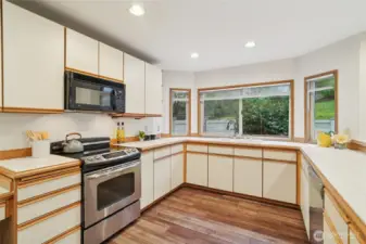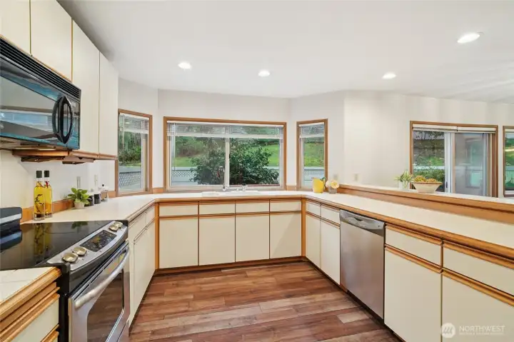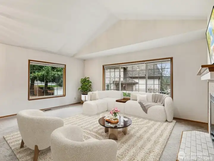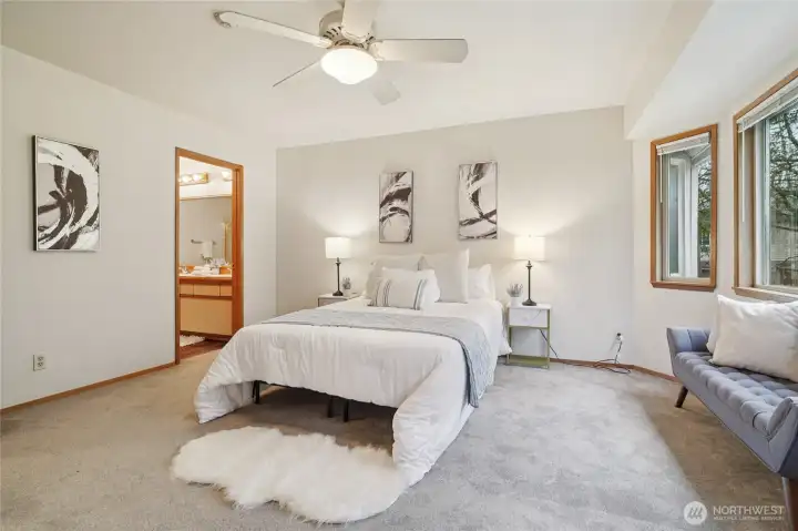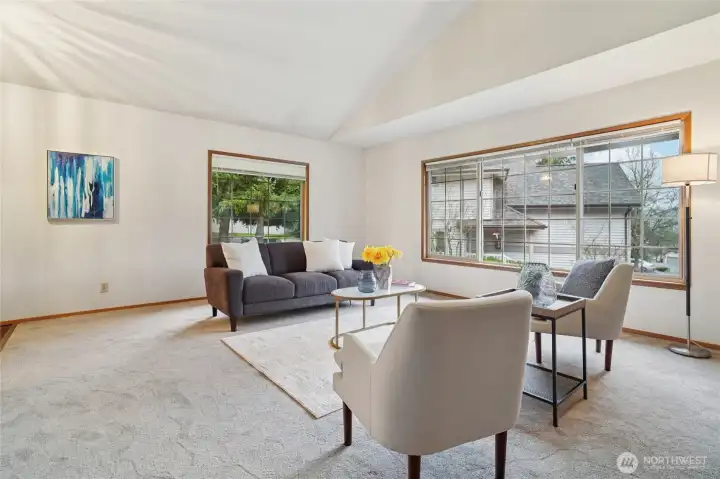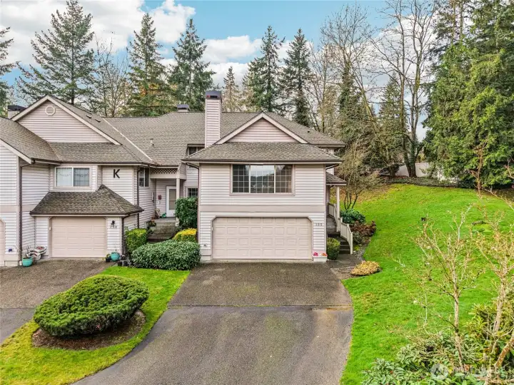Welcome to Walnut Hills in the heart of Redmond. This end unit Townhome feels like a Single Family Home with its spacious layout, 2 large bedrooms, multiple living areas, and attached 2-car garage. Upon entry, you'll fall in love with the spacious kitchen with breakfast bar that opens up to a family room and right around the corner from a formal dining room. Upstairs, you'll have an oversized living room with gas fireplace and tons of light from the huge window. Walk-in closet allows for lots of storage. Primary bedroom with attached En-Suite and second bedroom has their own additional main bath. Laundry room upstairs. All appliances stay. Prime eastside location and access to everything!
