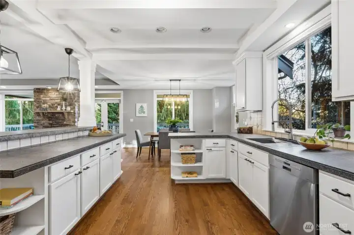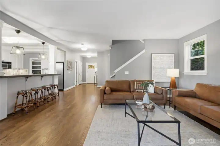 Set on a corner lot with a private, retreat-like feel, this 3-bedroom, 2.5-bath home offers 2,501 square feet designed for both everyday comfort and effortless entertaining. Light-filled living and dining spaces flow seamlessly, creating an inviting atmosphere for gatherings large or small. The kitchen connects naturally to the main living areas, making it easy to cook, host, and stay engaged all at once. Step outside to a spacious covered back deck that extends your living space year-round—perfect for outdoor dining, relaxing evenings, or weekend get-togethers. An included hot tub adds a spa-like touch, while dedicated garden space invites you to plant, grow, and enjoy the outdoors at your own pace. The corner lot enhances privacy and usability, offering room to spread out without sacrificing convenience. Upstairs, well-proportioned bedrooms and baths provide flexibility for guests, work-from-home needs, or hobbies. Recent updates include a newer roof, water heater, and air conditioning, offering added peace of mind and comfort. Ideally located with easy access to both I-5 and I-405, this home combines privacy, functionality, and connectivity—supporting a lifestyle that balances indoor ease with outdoor enjoyment.