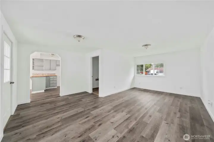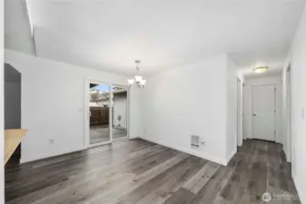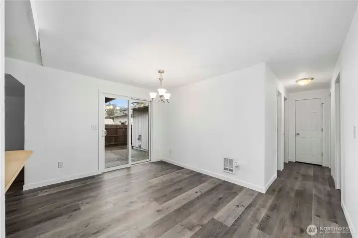Welcome home to this beautifully remodeled rambler in a prime central location. Enjoy brand-new luxury vinyl plank flooring and fresh interior paint throughout, creating a bright and cohesive living space. The spacious primary suite features a walk-in closet and private slider access to the rear patio. Three separate patios surround the home, offering multiple outdoor gathering areas and seamless indoor-outdoor living. A large bonus room with exterior access provides flexible space for a home office, gym, or media room. The dedicated laundry room offers extra space that can double as a pantry. A large backyard and attached storage shed add convenience and functionality. Located within walking distance to the middle school and close to shopp