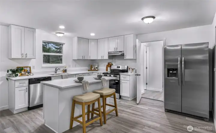 An incredible 3 Bedroom, 2 Bathroom Bellingham find — Completely remodeled and move-in ready! This home features a brand-new roof, kitchen and baths, new flooring, lighting, and fresh paint inside and out plus TWO bonus rooms + bathroom! Backyard is cleared and ready to be replanted with your unique vision. Every detail has been thoughtfully refreshed for modern comfort and style. Ideally located near Lake Whatcom, trails, shopping, and schools in one of Bellingham’s most sought-after neighborhoods. Enjoy worry-free living in this stunning, turnkey home — a must-see before it’s gone!