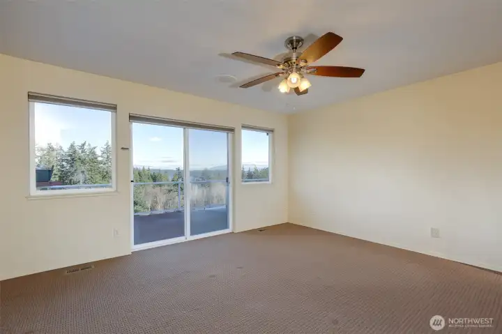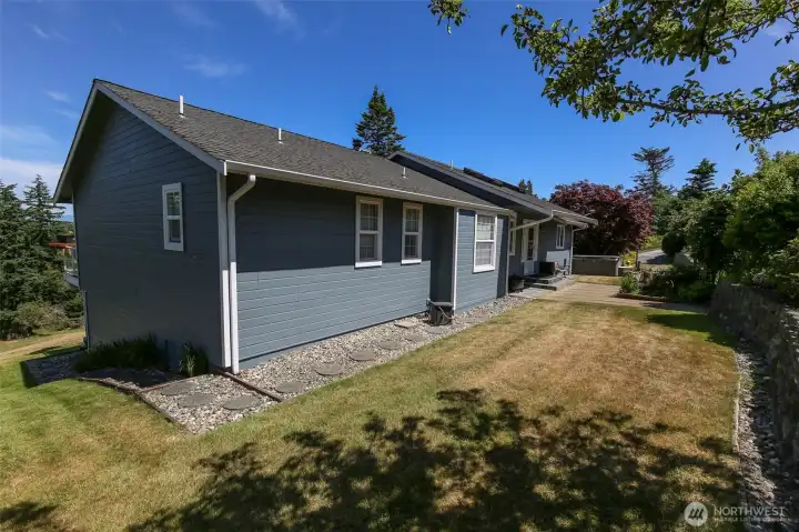 Enjoy stunning Mt Baker & the Puget Sound views from the full-length deck! Backing to 11+ acres of HOA land, you'll enjoy rare privacy & the feel of wide-open space w/o the upkeep. Upstairs features, 2 beds, large home office, a full & ¾ bath, remodeled kitchen w/custom cabinets & new floors, great room, cozy wood-burning fireplace, built-in surround sound w/6 ceiling speakers. Built-in accent lighting adds warmth & charm throughout. The lower level with private no-stairs entry-ideal for multi-gen living or guest quarters-kitchenette, bedroom, living area, utility room, & ¾ bath. Easy-care landscaping w/fruit trees. This unique home blends stunning views, versatile living space in one of the area's most desirable locations. You are home!