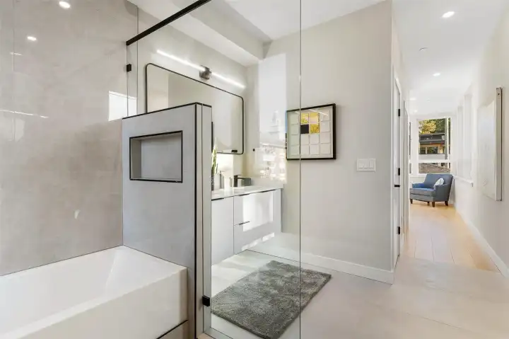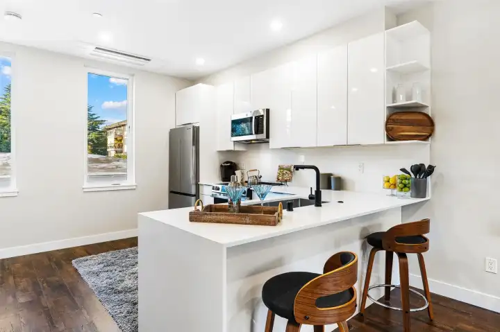 Enjoy modern living in these NEW CONSTRUCTION West Seattle townhomes. Designed for comfort, style & flexibility, this home offers street or alley entries The bright open layout will delight you, featuring a main level with beautiful spacious kitchen w/quartz counters & stainless appliances, and hidden half bath. Upstairs, unwind in the luxurious primary suite w/walk-in closet & spa-like bath. The spacious home also offers 2 more bedrooms, full bath & private lower entrance—perfect for guests or office. The roomy and private 450 sq ft rooftop deck showcases Puget Sound & Olympic Mtn. views. Sitting on a quiet street, you are close to everything West Seattle has to offer. Plus no HOA!