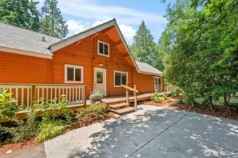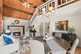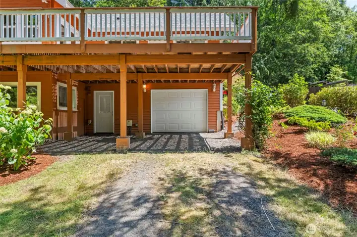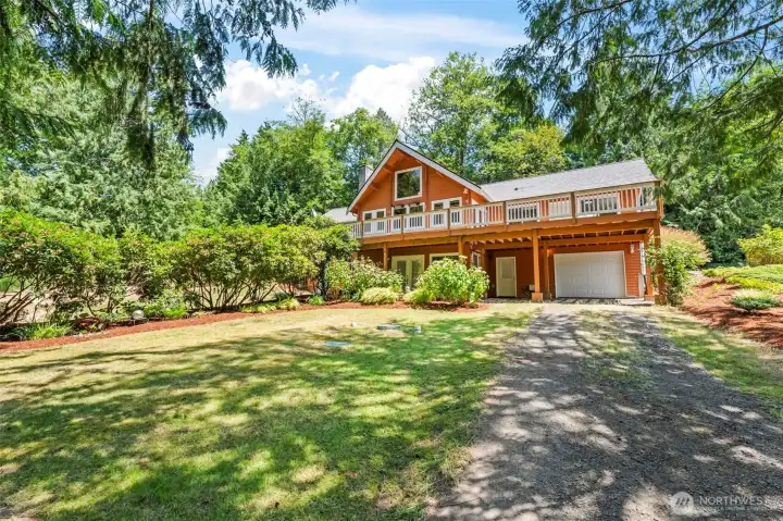 Welcome to your private Bainbridge Island retreat! This spacious home sits on a large, quiet lot surrounded by nature, offering flexible living with 3 bedrooms, 4 bathrooms, and 2 bonus rooms. Soaring ceilings, big windows, and cozy fireplaces fill the home with light and warmth. The updated primary suite features a beautiful bath, walk-in closet, and fireplace for the perfect retreat. A separate guest suite with its own private entrance, kitchenette, bedroom, and bath creates an ideal setup for multi-generational living or guests. Enjoy the large deck, mature landscaping, and peaceful privacy—all just minutes from shopping, dining, schools, the ferry, and Hwy 305.