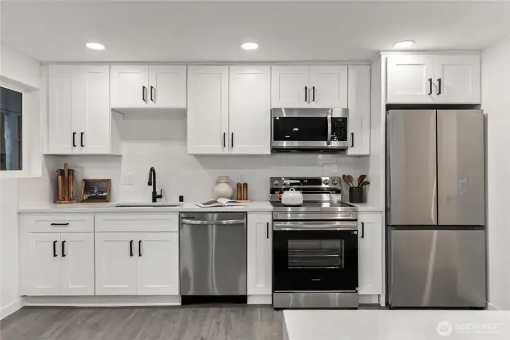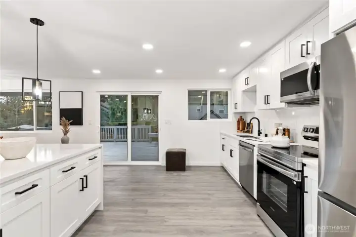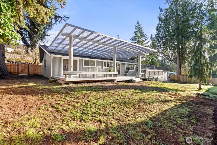 Nestled on a spacious lot, this beautifully updated single-story home offers 3 bedrooms, 1.75 baths, and 1,820 sq. ft. of comfortable living. The open-concept, renovated kitchen shines with quartz countertops, a spacious island, and modern appliances, flowing seamlessly into the dining and living areas with a cozy wood-burning fireplace. A large family room with a skylight fills the space with natural light, plus an office/den provides extra flexibility. The primary bedroom boasts sliding doors to a covered back deck and a double closet. Enjoy a fully fenced backyard, RV parking, and room to relax or entertain year-round.