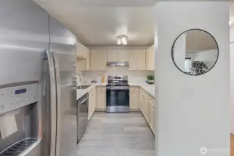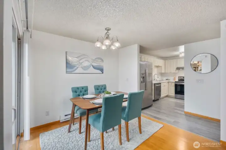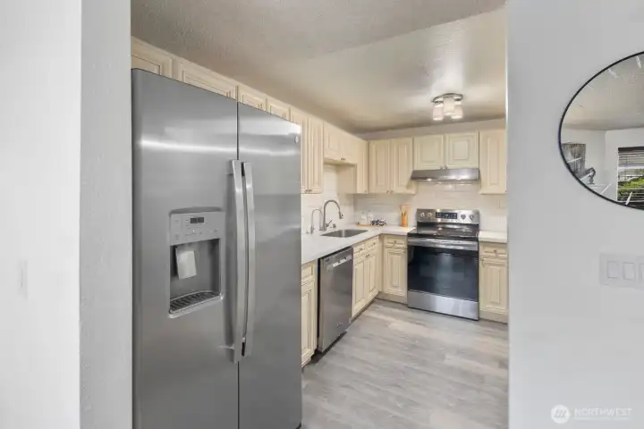 Lovely updated townhome in desirable Hudson Ridge near Des Moines waterfront! Completely remodeled kitchen with soft-close cabinetry, quartz countertop, subway tile backsplash, LVP flooring, under-mount sink. Open main floor living & dining spaces graced with bamboo flooring & cozy wood-burning fireplace. Real hardwood flooring staircase leading up to master bedroom, second bedroom & full bathroom upstairs. LVP flooring upstairs. 2 assigned parking spaces - 1 covered & 1 uncovered. Community amenities include clubhouse, fitness center, pool, playground. Minutes to Redondo Beach, future light rail station at 238th & 99, major highways I-5 & Pacific Highway, Highline College, schools & neighborhood parks, shopping & business hubs.
