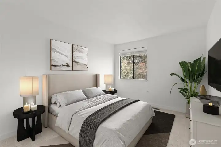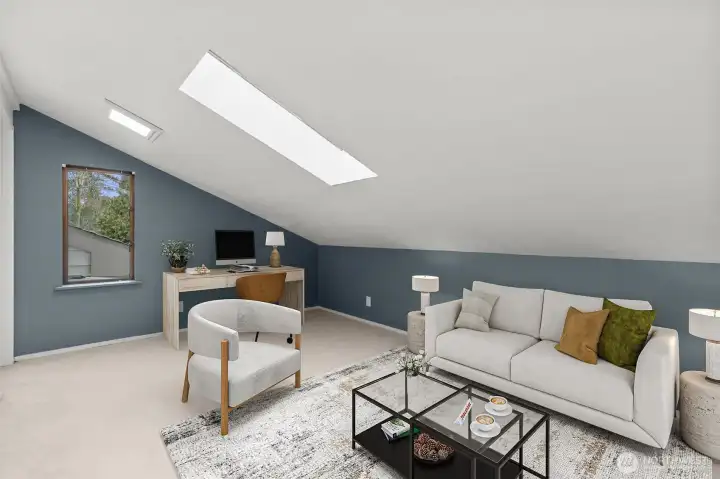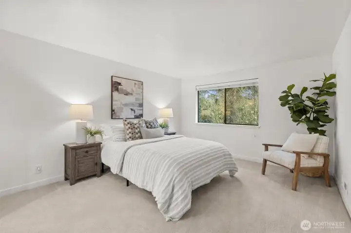 This light-filled end-unit townhome combines thoughtful updates with a location tailored for today’s connected lifestyle. Vaulted ceilings and expansive windows enhance the open main-floor plan, while a refined fireplace adds warmth and definition to the living area. The remodeled kitchen features a striking quartz island and newer cabinetry, seamlessly supporting daily living and entertaining. Upstairs, a spacious loft adds flexible living or work-from-home space, while the primary suite includes an updated bath with frameless shower, modern vanity, and custom built-in closet. Step out from the family room to a cozy deck for outdoor enjoyment. Recent improvements include newer carpet, interior paint, furnace, and air conditioning. A spacious two-car garage and well-run HOA provide added ease. Set within the Bellevue School District and approximately five minutes to downtown Bellevue, with quick access to Microsoft, major highways, transit, retail, and dining—this home offers a smart balance of livability and location efficiency. Home must be owner occupied!
