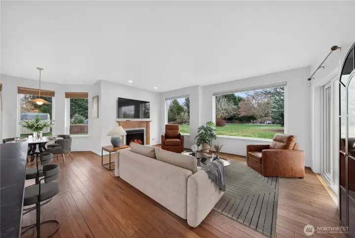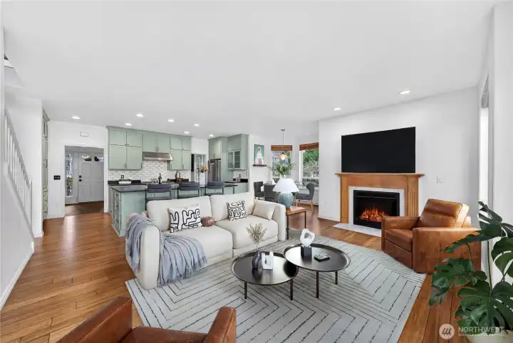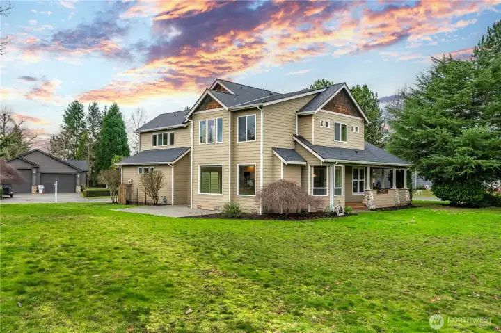Welcome to Skyline Estates at Lake Tapps! Dieringer schools! This beautiful home sits on a rare, flat 0.78-acre corner lot in one of the area's most sought-after communities. Enjoy the charm of the covered front porch and bamboo floors on the main level. The remodeled kitchen offers soapstone counters, custom cabinetry, a 36" gas range, wall pantry, and oversized island - perfect for entertaining. Open-concept great room with gas fireplace and bay-window nook. Upstairs features a spacious bonus room and serene primary suite. Newer roof, water heater, A/C, carpet and custom blinds. 10x20 shop/shed, fenced garden, and fruit trees. Move right in!