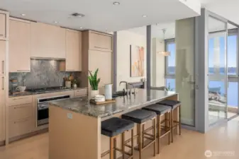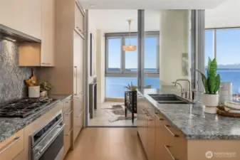 Stunning western views from this home on the coveted NW corner situated high above Pike Place Market. This residence offers phenomenal views of Elliott Bay, the Olympic Mountains, Seattle Big Wheel and sparkling city lights. The perfect setting for gracious entertaining of friends or quiet evenings at home enjoying the sunsets. Generously appointed large open living space, a chef's kitchen with separate pantry, primary suite with spa bath, guest bedroom with bath. Water views from both bedrooms. Just steps from new waterfront park and aquarium, Pike Place Market, Benaroya, stadiums, the arts, retail and Sculpture Park. Concierge 24/7, light rail, trolly and monorail. Rooftop terraces, gardens, BBQ, gym, yoga studio, boardroom, sky lounge.