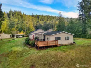 Private 5.41-acre gated property in Seabeck featuring a well-maintained manufactured home in immaculate condition inside and out. Partial mountain views and extensive clearing create open, usable space while preserving privacy. Multiple outbuildings, sheds, and shops provide excellent storage and workspace. A large two-car garage includes a workshop and bonus room above. Two septic systems on the property will add flexibility and future potential. Ample storage areas and fresh-cut wood convey. Fiber-optic high-speed internet is installed, ideal for remote work setting. A seasonal salmon creek runs through the lower portion of the property, enhancing this peaceful rural setting with room to grow, garden, or expand. So much to explore!