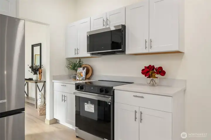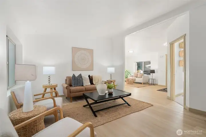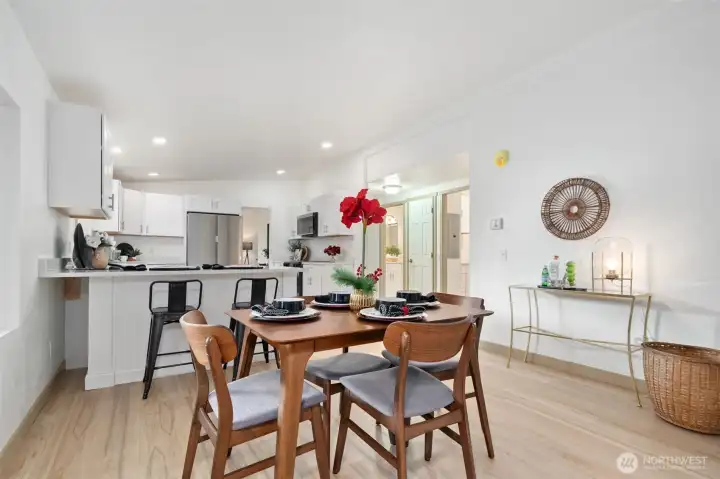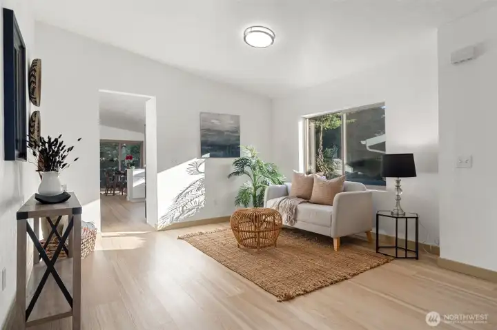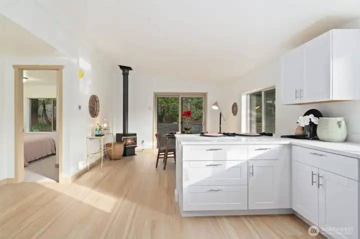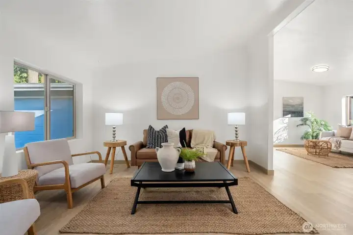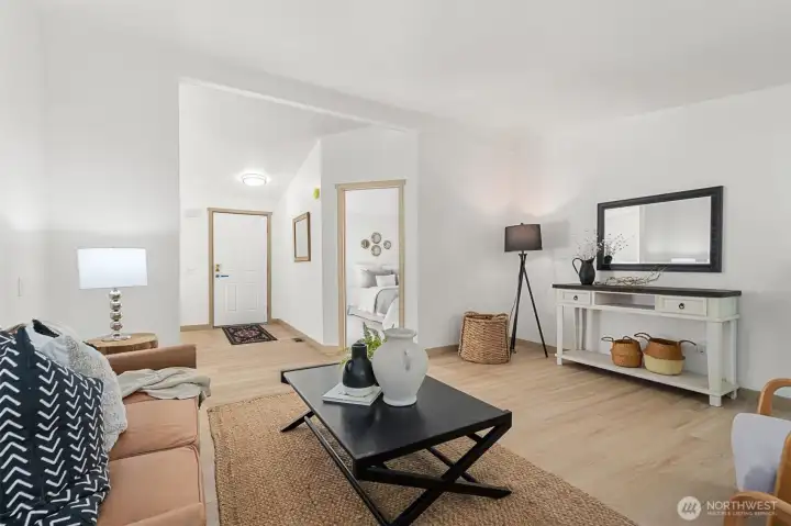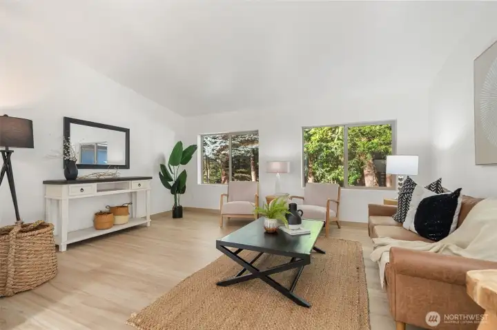 Lives Like NEW! Fully renovated, large open space DW, with vaulted ceilings, in desirable Viking Park. This well kept and sought after 55+park is near all the amenities one could need! This stunning bright 3 bed/two bath, is fully updated. Includes Updated LVP flooring, tile in the bath and shower, Quartz countertops, new cabinets and new high end appliances that convey, it is a must see. Tons of parking space and a 2-stall large attached garage for convenience. Clean crawl with tie downs.Tucked back in a corner on one of the largest lots in the park with a back patio for entertaining. RV parking storage available.