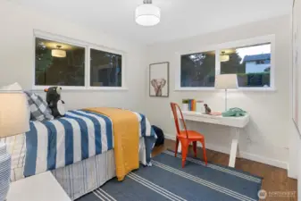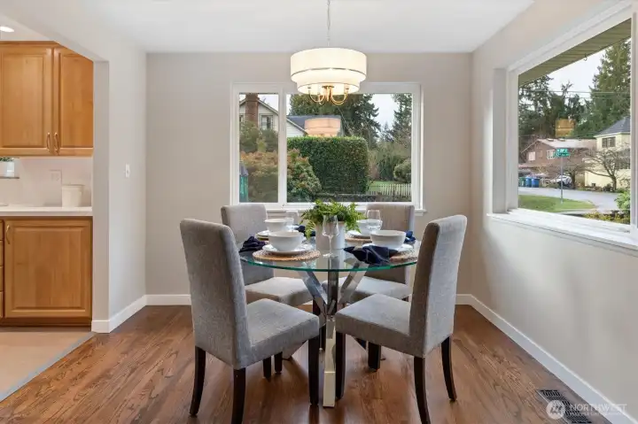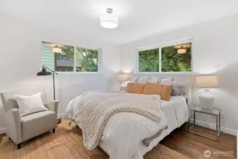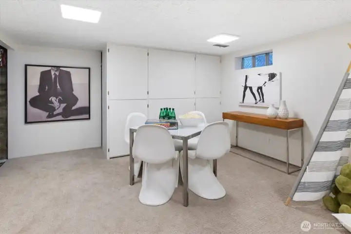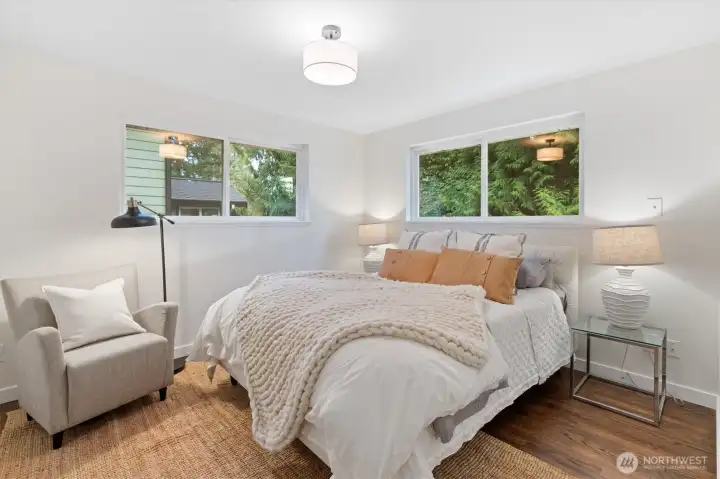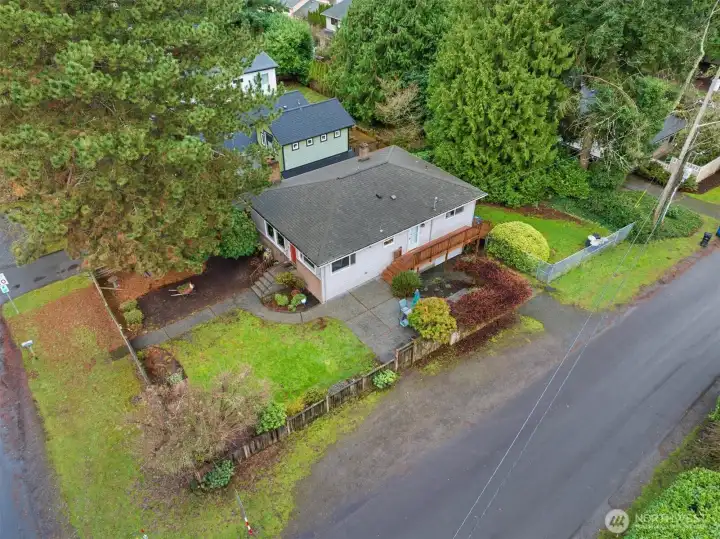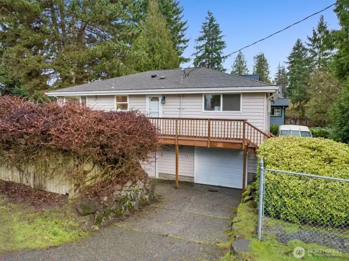 Unparalleled blend of style, convenience, & comfort. The main level boasts a seamless floor plan that includes 3 bedrooms, a rare find that not only caters to practical living but also significantly enhances the home's resale value. Mid-century modern design with wall of windows creates an inviting ambiance bathed in natural light. Remodeled kitchen includes stainless steel appliances. Formal dining room is the perfect setting for gatherings. Spacious rec-room with fireplace provides ample space for relaxation & entertainment. Add equity by finishing off the lower level! Large fenced corner lot. Sought after Wedgwood neighborhood. Only minutes to UW, Children's, downtown & Amazon. Great home, sought after location! Yes, you can have it all!