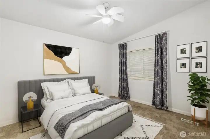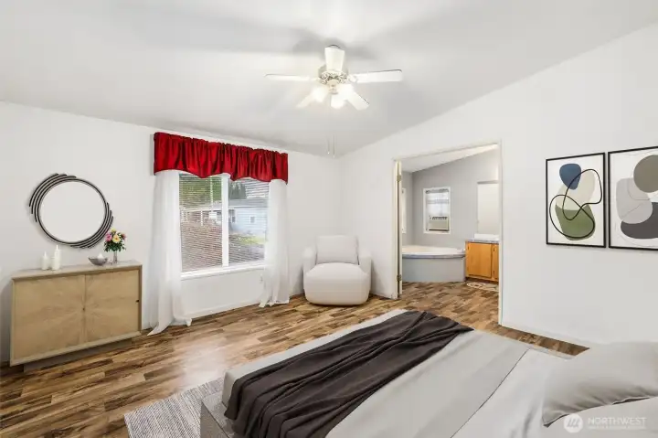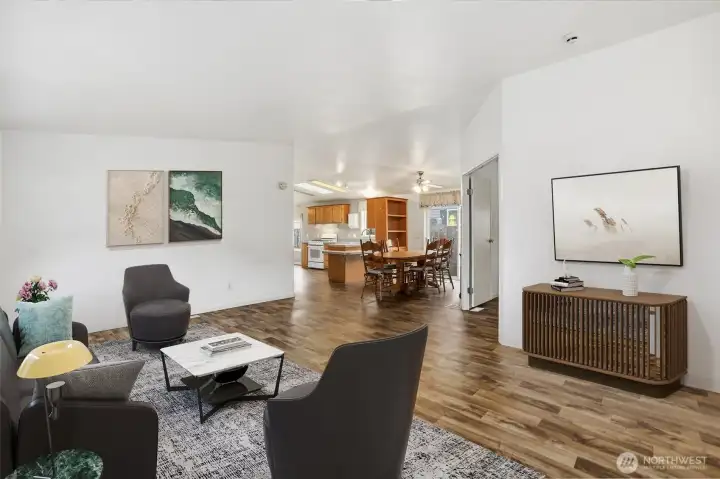 Well-cared-for and move-in ready 3 bed, 1.75 bath manufactured home located on a large corner lot in a great community. Features include vaulted ceilings, an expansive kitchen with breakfast bar, plenty of storage space, and spacious bedrooms including a luxurious primary suite with ensuite bath. The office/den offers flexibility and could easily serve as a 4th bedroom. Enjoy the private patio, perfect for relaxing or entertaining. Excellent location with a comfortable and functional layout—this home is a must-see!