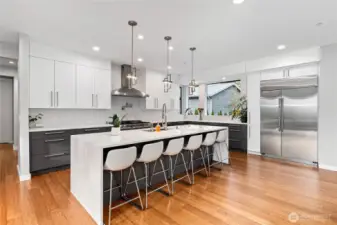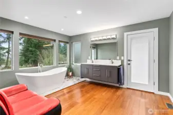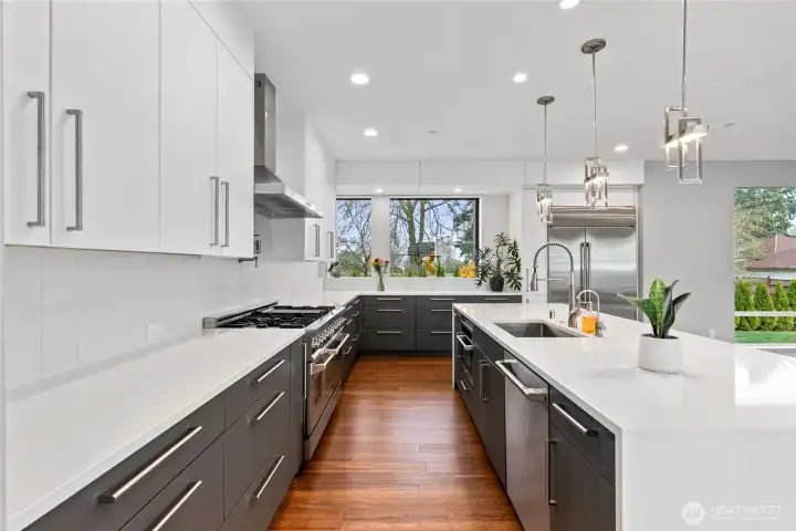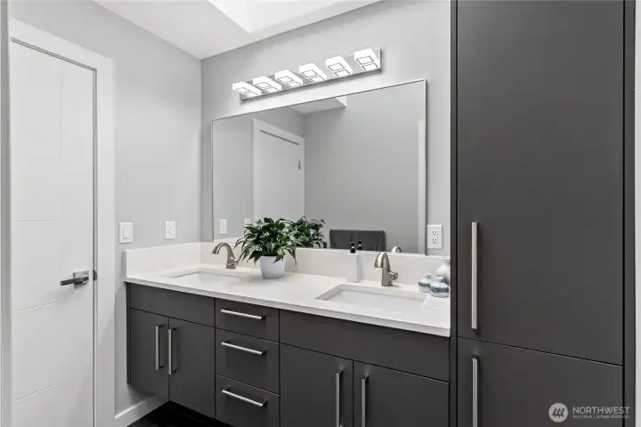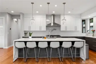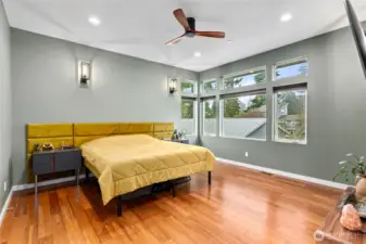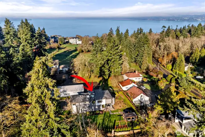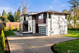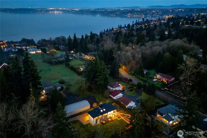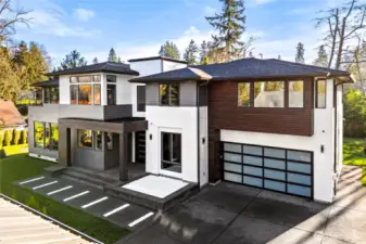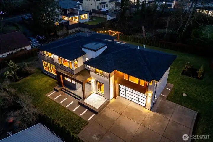 Architecturally striking and thoughtfully designed, this modern residence offers a secluded retreat with territorial and water views. Clean lines,walls of glass,and curated finishes define the interior,highlighted by engineered bamboo flooring and a statement fireplace anchoring the main living space. The chef’s kitchen features a waterfall island,custom cabinetry, and premium appliances. The primary suite is a true sanctuary with a spa-like bath and private balcony. Designed for entertaining, the backyard showcases covered patios, a fire pit lounge, and gazebo—ideal for gatherings year-round. Bold exterior architecture is enhanced by warm wood accents and dramatic evening lighting. Gated entry ensures privacy. Timeless elegance, redefined.
