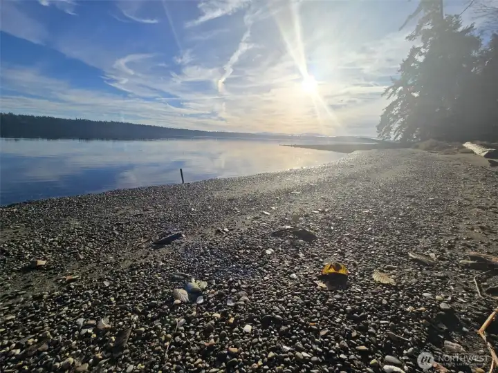 Your serene waterfront sanctuary awaits you on Totten Inlet where home feels like a permanent vacation! Path on property leads to 160’ of private beachfront & 200’ of tidelands. Kayak, swim, fish, harvest oysters & clams from your own beach. This lovely 2,430 sf, 2 BR + den home features an open light filled concept design, cook's kitchen w/large island, quartz counters, stainless steel appliances & pantry, dining & living room w/floor to ceiling windows to enjoy the amazing view & French doors leading out to view deck – perfect for entertaining; whole house water filter system. Wake up to the fabulous view from the primary bedroom, w/spa like ensuite bath w/jetted tub & shower. Garage has a pass through to patio. Must see to appreciate!