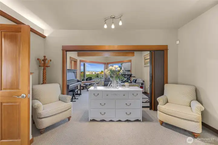 Own stunning views of Mt Baker from every corner of this custom single floor living, gorgeous custom home, nestled within a gated 5 acre park like setting, complete with invisible dog fence and Lifetime playground. Exceptional value in every detail including the spa like primary suite, 9'-24' cathedral ceilings, French doors, custom alder kitchen cabinets ,double convection oven, and walk-in pantry, wet bar, expansive bonus room and more. Recently added is a spacious laundry mud room and a 448 sq ft, fully independent and permitted suite with full kitchen, laundry, and separate heat pump. The 40’ by 60’ three bay insulated shop is equipped with radiant heat, full power and car lift. Simply too much to list! This is a must see!