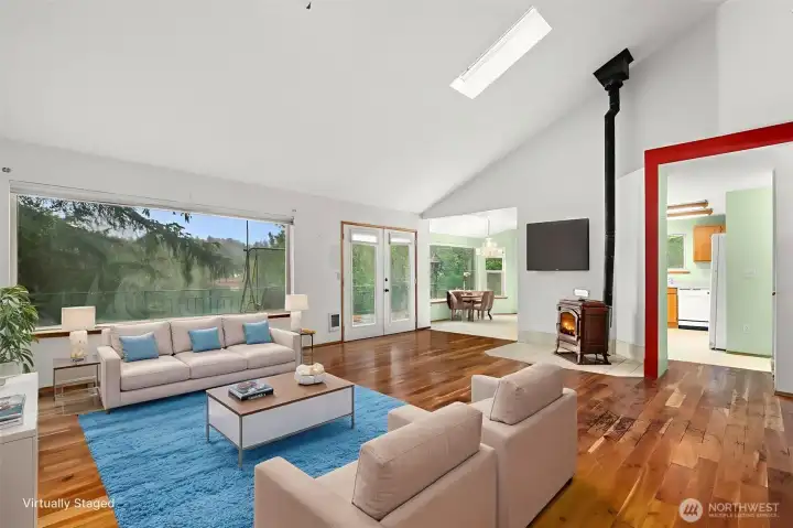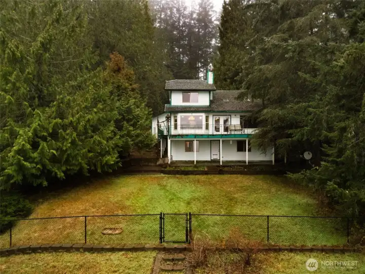 Welcome to waterfront living. This 2,500 sq ft lakefront home sits on a generous .8-acre lot. No hoa, motorized friendly lake makes ease for boating and fishing. Featuring 3 bedrooms, office and loft, the layout offers potential for multi-generational living or income-producing rental use, with a basement that has its own private entrance. The home showcases solid wood cabinetry, tile roofing, a private dock and an attached garage plus a detached heated garage/shop for added storage, hobbies or future DADU. With a little elbow grease this home will be brought back to all its glory. Enjoy the modern fully fenced private property and abundant parking for boats and RVs. Come check out this home on Panther Lake and see all that it has to offer.