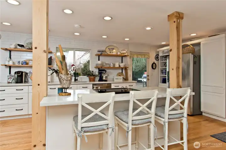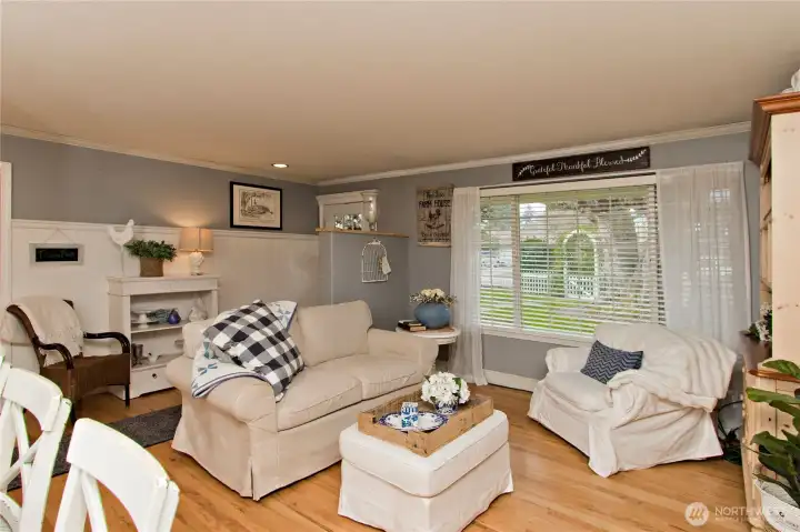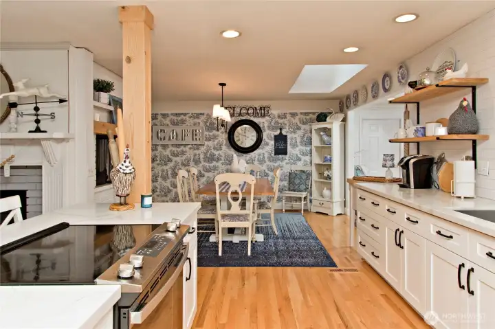 Charming rambler with 24x30 SHOP WITH ELECTRICITY AND A FINISHED 15x15 HEATED OFFICE/FLEX SPACE UPSTAIRS. Many thoughtful updates. Originally a 3-bedroom, converted to a 2-bedroom. Features gorgeous hardwood floors and a warm, inviting double fireplace shared between the living and dining rooms. The updated kitchen is the heart of the home, with quartz countertops, open shelving, and stainless steel appliances, and it leads to the outside deckâperfect for entertaining. Spacious family room with French doors to the backyard. Unwind in the primary bedroom with an extra-spacious walk-in closet and French doors that also open to the backyard. Large utility room, A/C, newer water heater, and a spacious yard with a classic white picket fence.