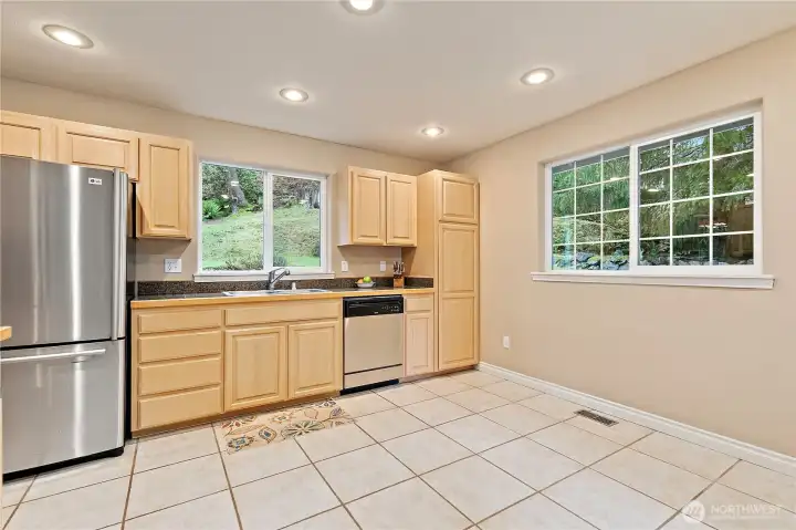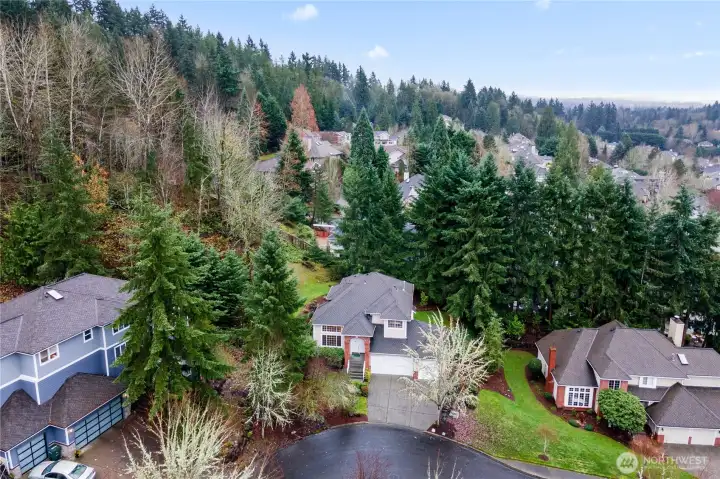 Situated on a cul-de-sac in the Bridlewood neighborhood, this inviting 2 story home offers a classic floor plan w/ both formal & casual living spaces. The formal living room features vaulted ceilings & large windows that bring in abundant natural light. The kitchen opens to the great room w/ a cozy fireplace & views of surrounding greenery. Upstairs includes a generous primary suite w/ 5-piece bath plus 2 additional bedrooms. Set on a .43-acre lot backing to native growth, enjoy privacy, an entertainment deck, grass area & flower beds. A 3-car garage w/ high ceilings offers excellent storage. Located near Blythe Park & the Sammamish/Burke-Gilman trails, providing easy access to outdoor recreation while still feeling like a peaceful retreat.