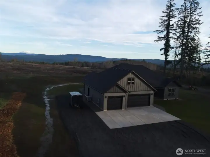 Custom New Home on over 2 acres in a desirable location, 5 mins off I-5. Located on a private dead end road. The lot has stunning Mountain Views until neighboring lots build. This home is a must see. Home offers a split floor plan with oversized master suite, tiled walk in shower and large walk in closet. The living space has an open plan with a custom kitchen that flows into the living room with oversized sliding glass doors. The outside entertaining area has incredible mountain views to enjoy with your cup of coffee. The Jack-n-Jill bathroom helps bring bedrooms 2 & 3 together and ties this well thought out floor plan together. 3 car garage and 50 amp rv outlet.