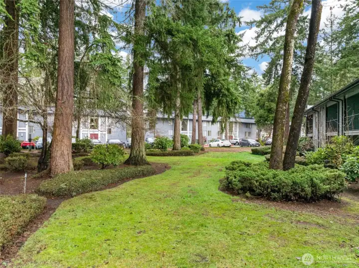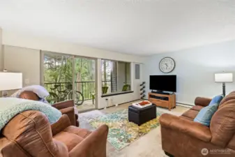 This welcoming 2 bedroom, 2 bath condo at The Bluffs offers comfortable, easy living in a highly desirable location. The spacious living room opens to a private balcony with a peaceful treed outlook, perfect for relaxing or hosting summer barbecues. The kitchen is cozy and functional with ample cabinet space, and both bedrooms are generously sized, including a primary suite with its own bath. Enjoy community amenities such as a clubhouse, pool, and tennis courts, along with nearby walking trails and a golf course. The HOA covers water, garbage, and exterior maintenance for low maintenance living. Conveniently close to shopping, dining, and JBLM.